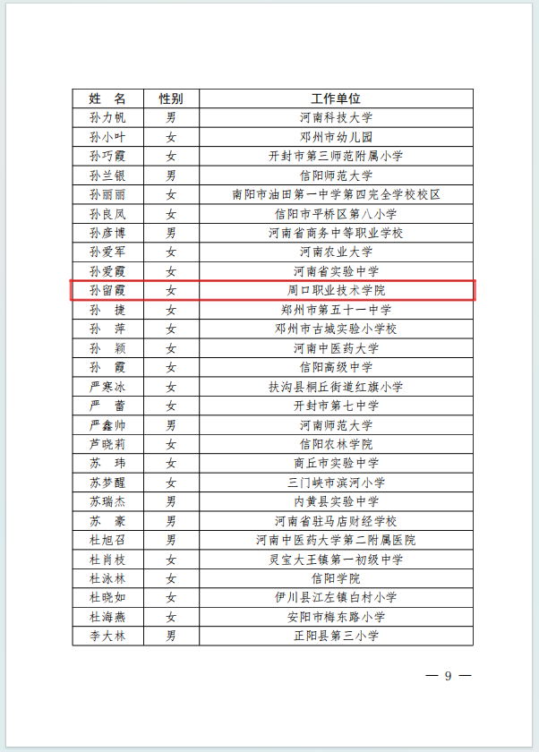 近日,河南省教育厅发布了《河南省教育厅关于公布2025年度河南省教育厅学术技术带头人入选名单的通知》[教人〔2025〕186 号],我院教师孙留霞成功入选。